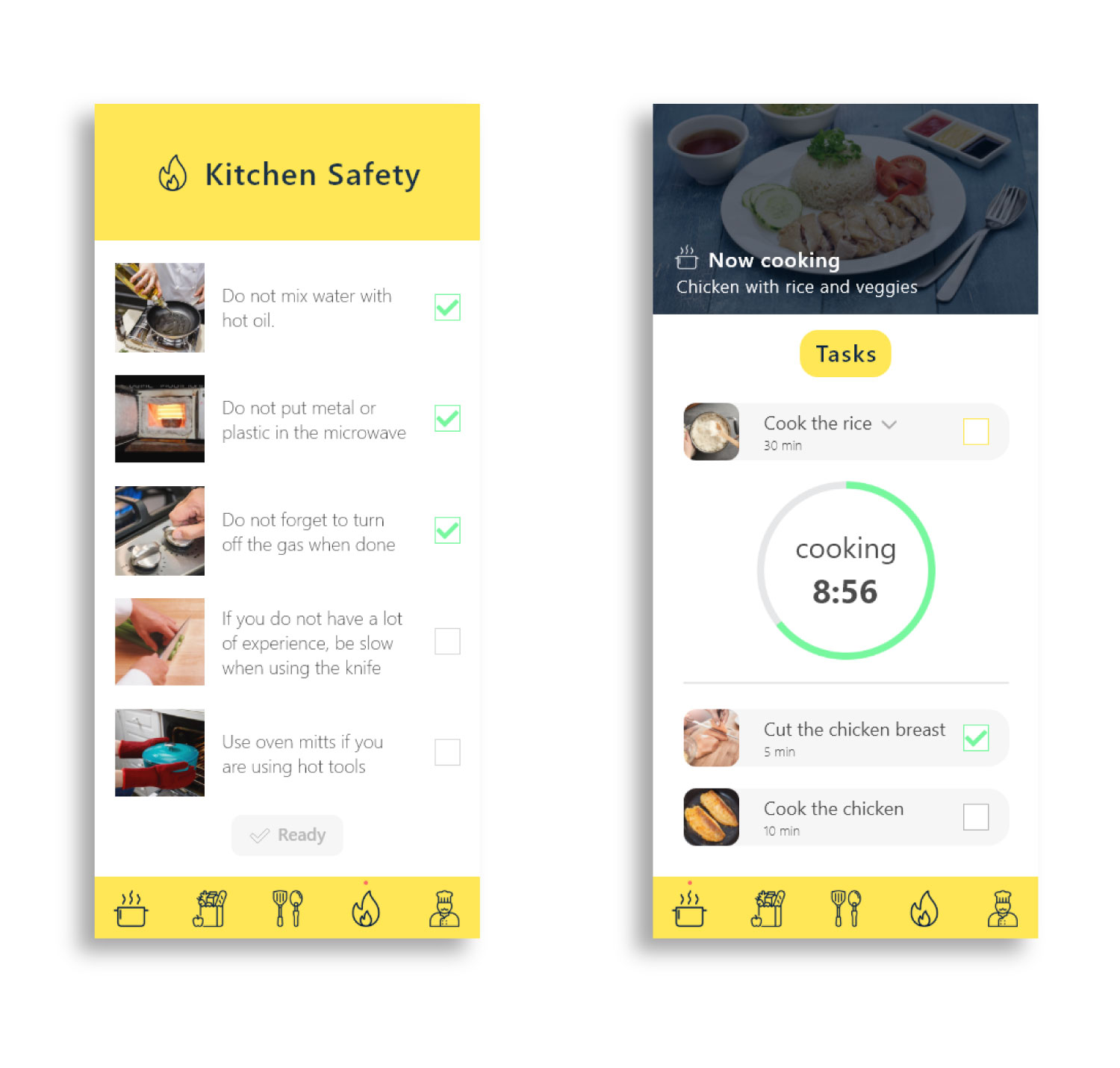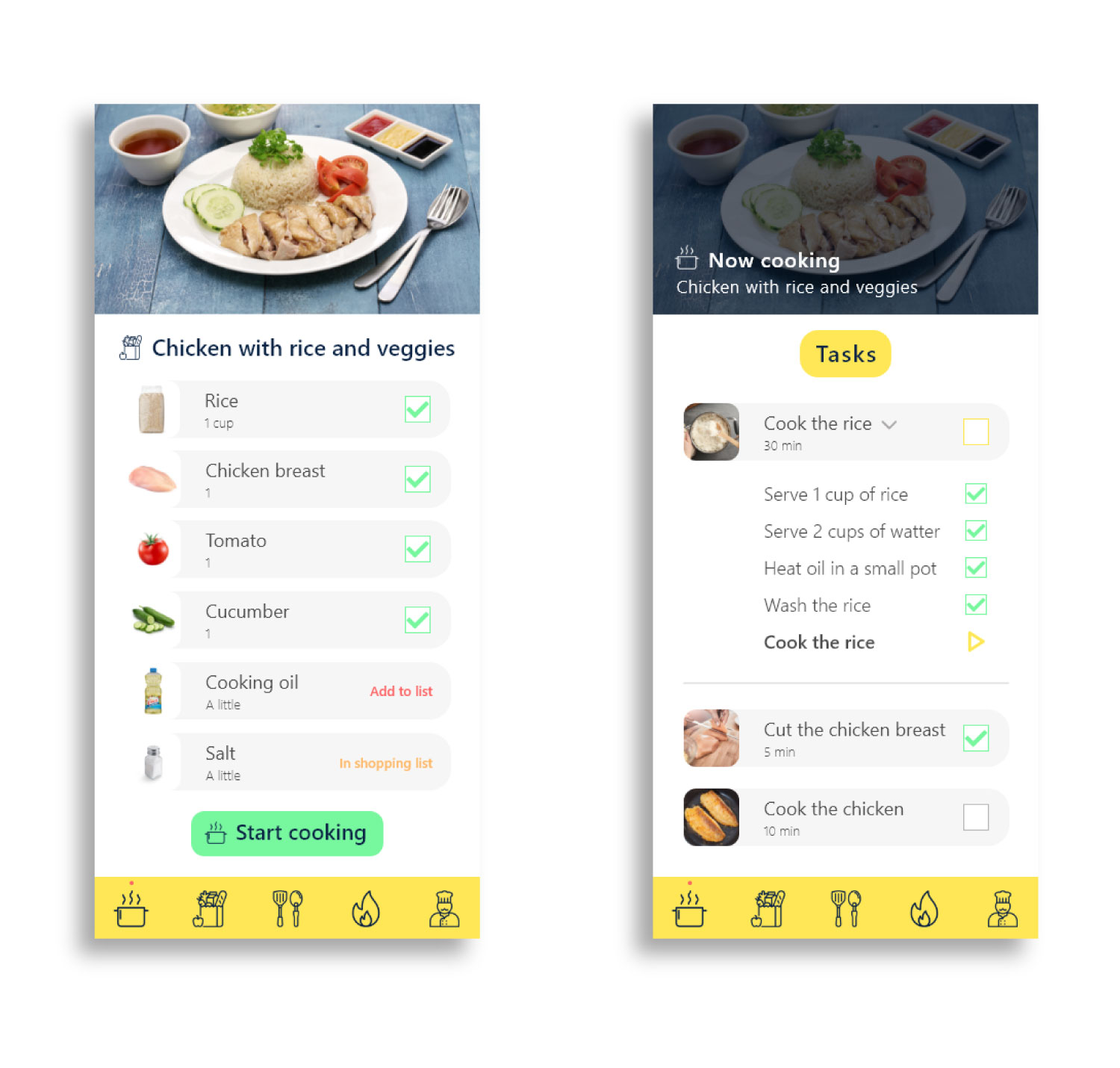 The main objective was to make NIK a sort of ‘personal trainer’ in the kitchen. In that order of ideas, the app should not be created in order to offer a self-taught experience. Instead, the interactive functionality would focus on detailed explanations, ingredients and items lists, and supervised cooking tasks.